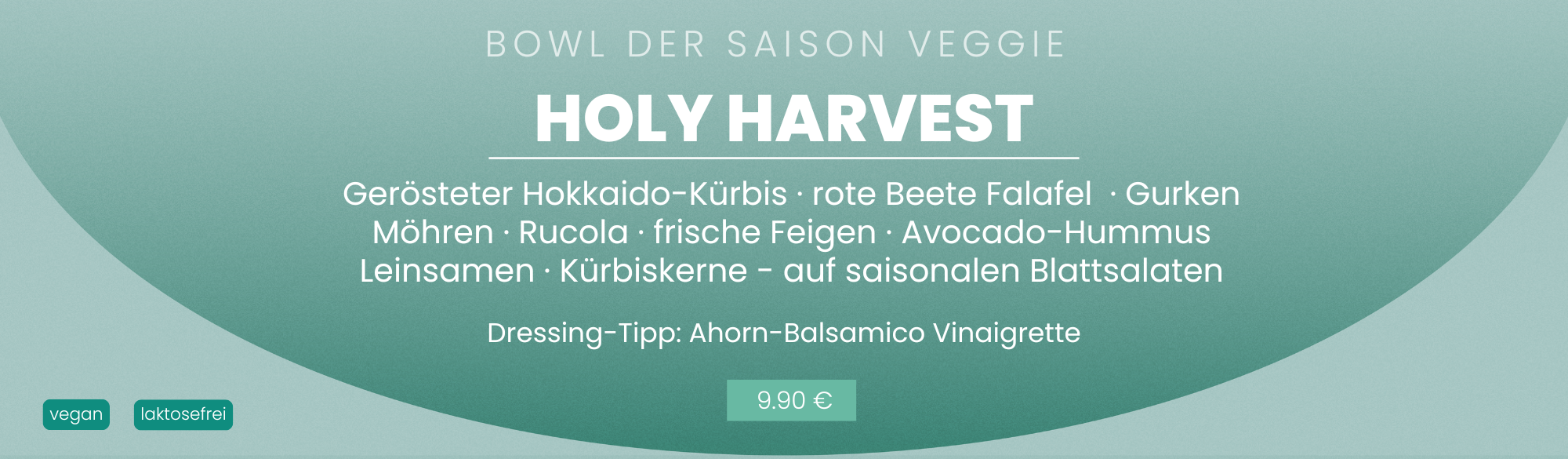Saisonale Blattsalate · Rucola · geröstete Süßkartoffeln · Hirtenkäse⁷ · Falafel¹ · Gurke · Möhren · Kirschtomaten · Sonnenblumenkerne