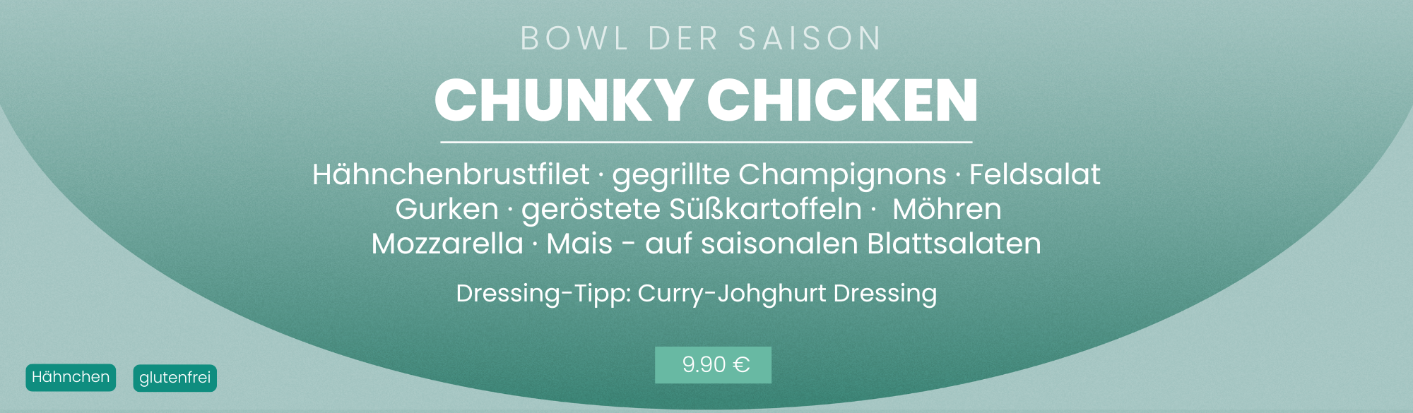 Jede Bowl erhältst Du inklusive Deinem Wunschdressing. Preis für ein zusätzliches Dressing: 1.50€